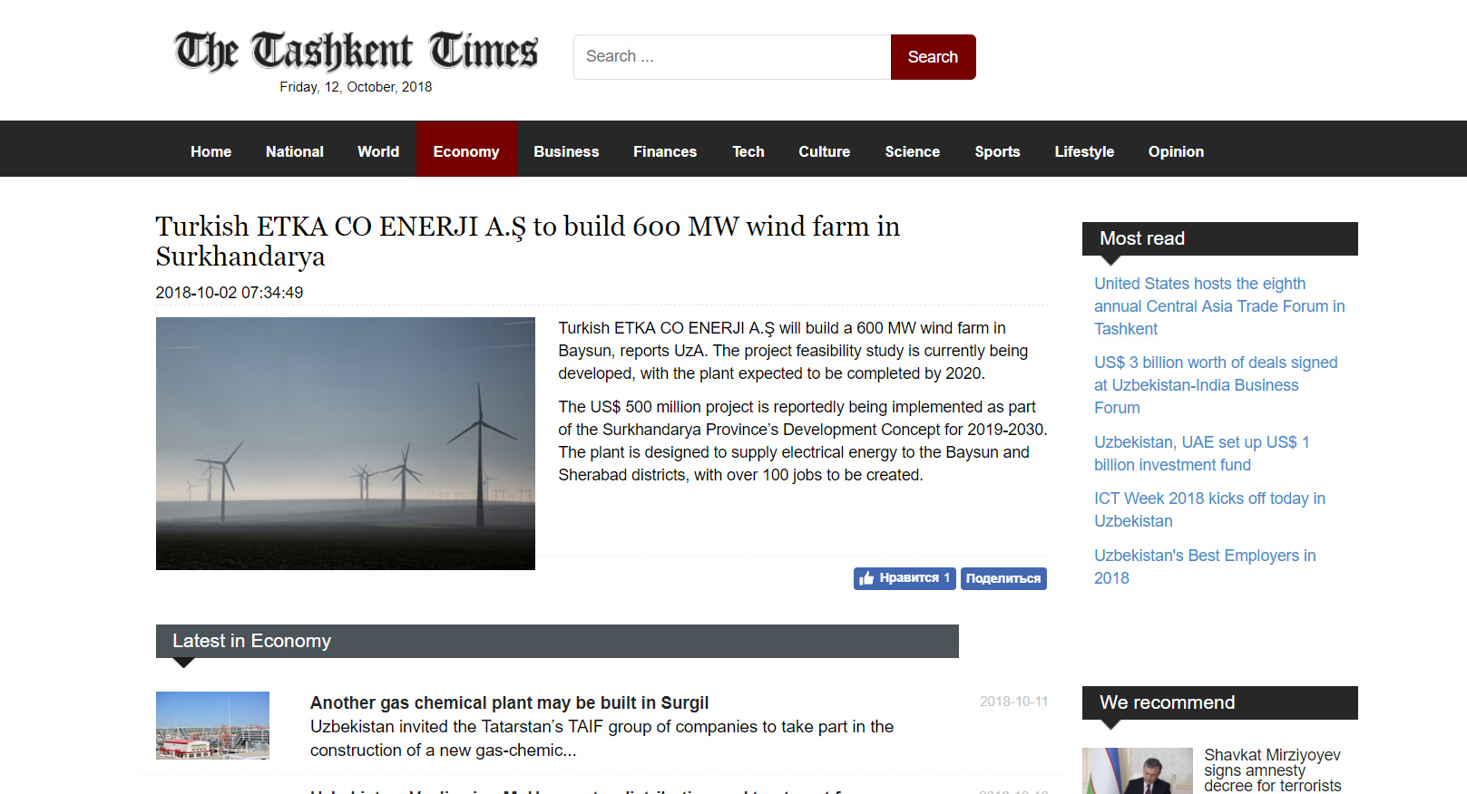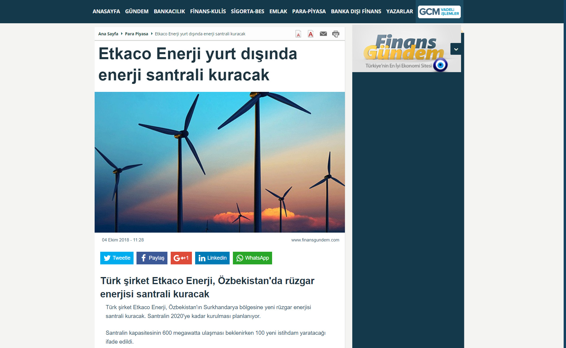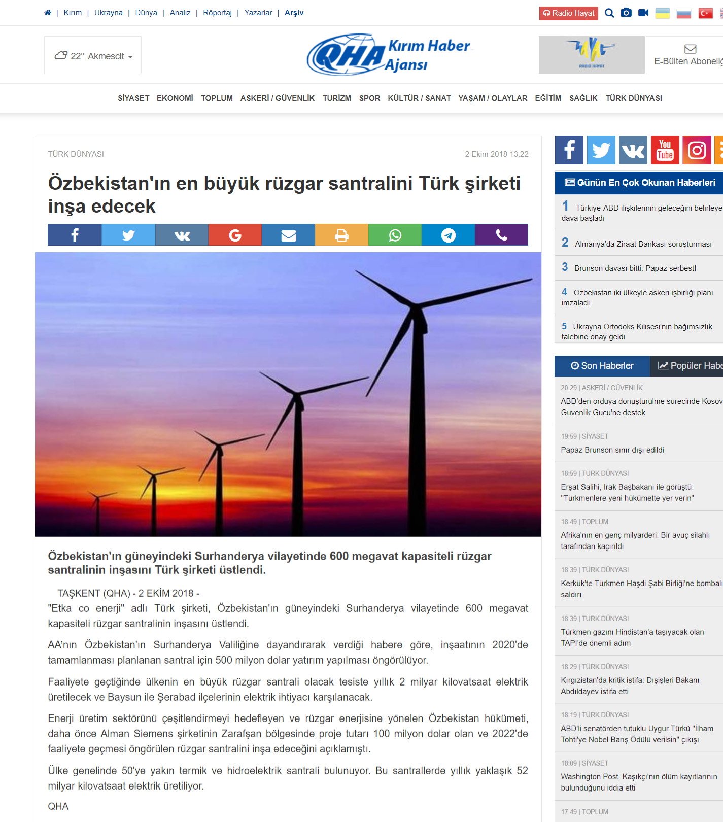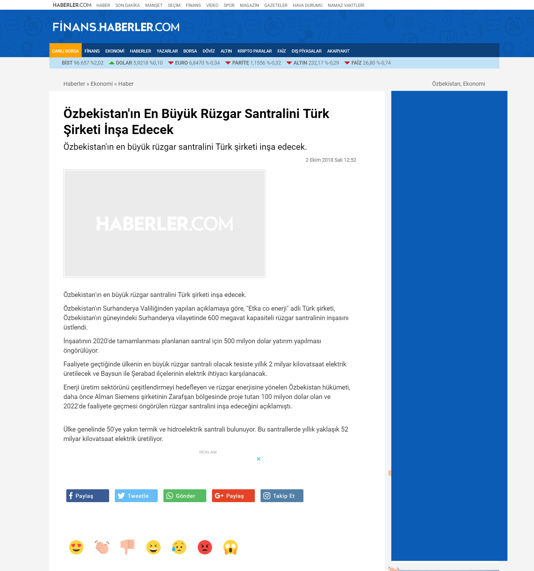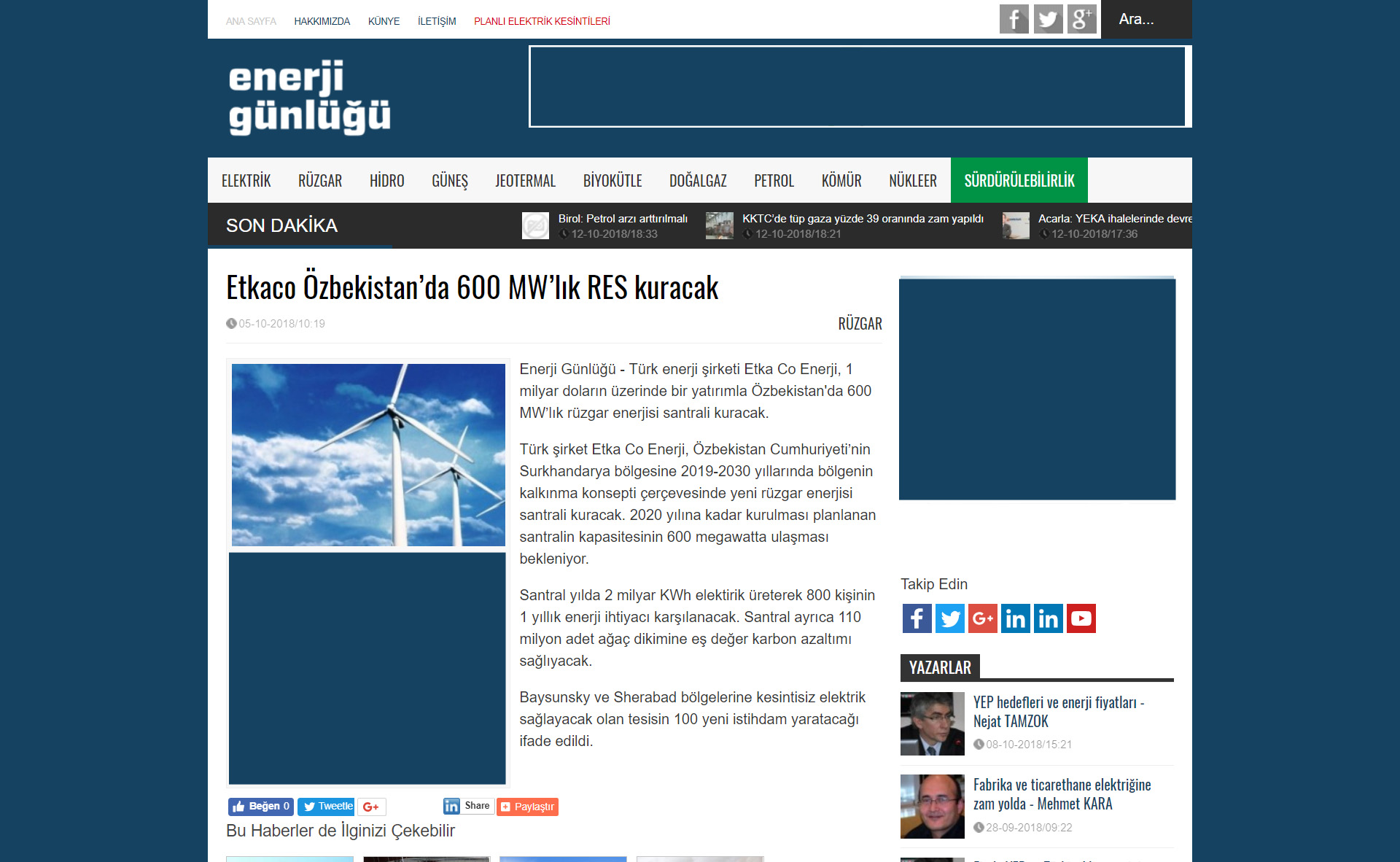 ÖZBEKİSTAN * ÖZBEKISTAN Cumhuriyeti Devletine ETKA CO ENERJI A.Ş tarafindan Kurulacak olan 600 MW rüzgar satrali ile yılda 2 milyar KWh Elektirik üretilecektir. *Bu da 800.00 kişinin 1 yıllık Enerji ihtiyacını karşılayacağız *110.000.000 Adet ağaç dikimine eş değet karbon azaltımını sağlıyacağız *ÖZBEKISTAN cumhuriyeti devletine yapilacak olan 600 MW lik Rüzgar santralinin yatirim bedeli 1.000.000.000 USD (bir milyar USD)üzerindedir Yine Özbekistan Cumhuriyeti Devletine farklı sektörlerde proje safasında olan, Rantabl ve Mükemmel 29 adet projenin hayata geçmesiyle ülke ekonomisine çok ciddi katkı sağlayacak olan bu proelerin yatırım tutarı da 1.660.000.000 EURO (bir milyar altı yüz atmış milyon euro ) dur.